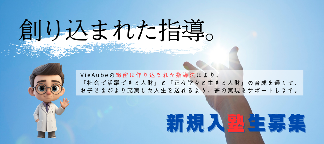 学習塾Vie Aubeは募集対象を鹿児島市内の御三家と云われる鶴丸高校・甲南高校・中央高校進学希望者に限定します。これにより指導の一貫性を図り、全員合格を目指します。志望校を明確にすることで同じ目標を持つお子様が集い研磨しあう環境を作ります。