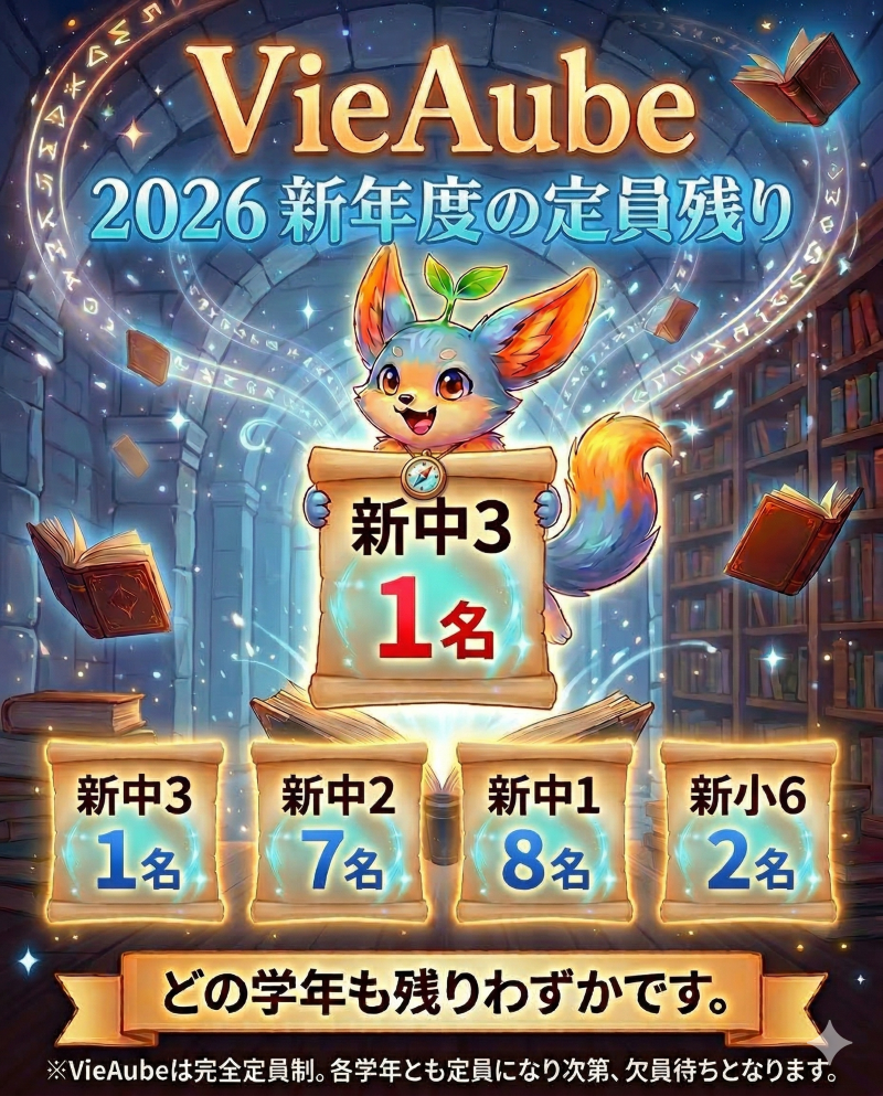 中学校入学に向けた土台作り、そして「自立した学習習慣」を身につけるための大切な時期。募集が締め切られる前に、ぜひ一度、VieAubeの空気感に触れていただきたいと考えています。