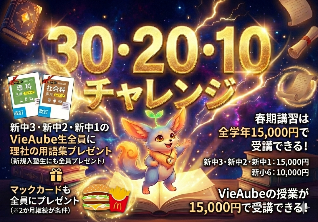 2026年、VieAube第3期が始動しました。教室では中学部統一模試が終わり、受験生たちは今、人生で最も濃密な時間を過ごしています。